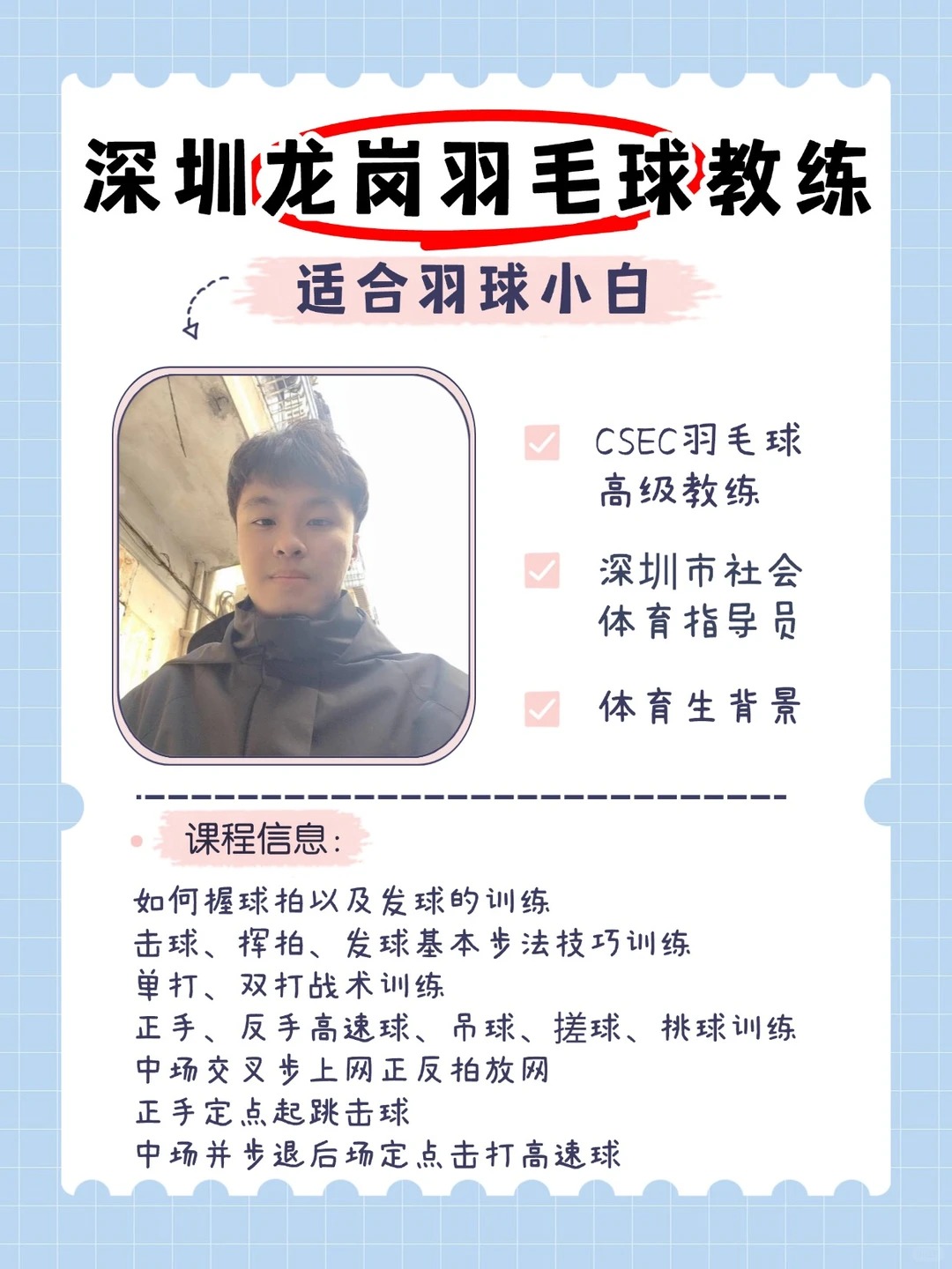 龙岗羽毛球小白福音|科班教练带你从0入门